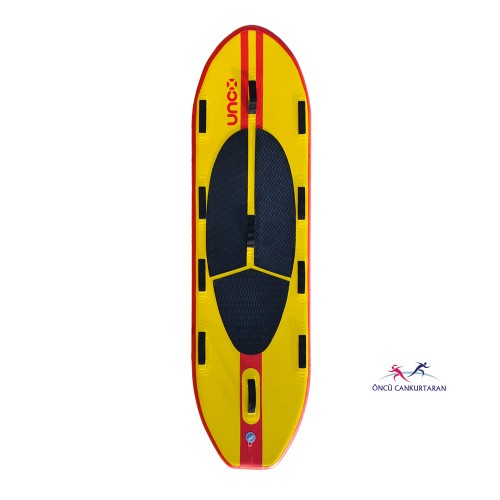 290X85CM ÖLÇÜLERİNDE KURTARMA AMAÇLI TASARLANMIŞ 8 ADET TUTAMAÇ KAYMAYI ÖNLEYEN KAPLAMA ZEMİN, ALTTA HIZ VE DENGE SAĞLAYICI YÜZGEÇLER V.S